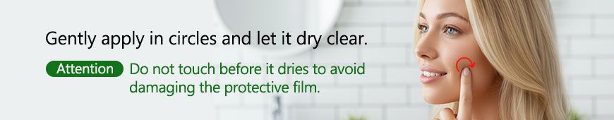 ( Attention: Do not touch before it dries to avoid damaging the protective film.) - Reapply as needed throughout the day for continued protection and hydration.